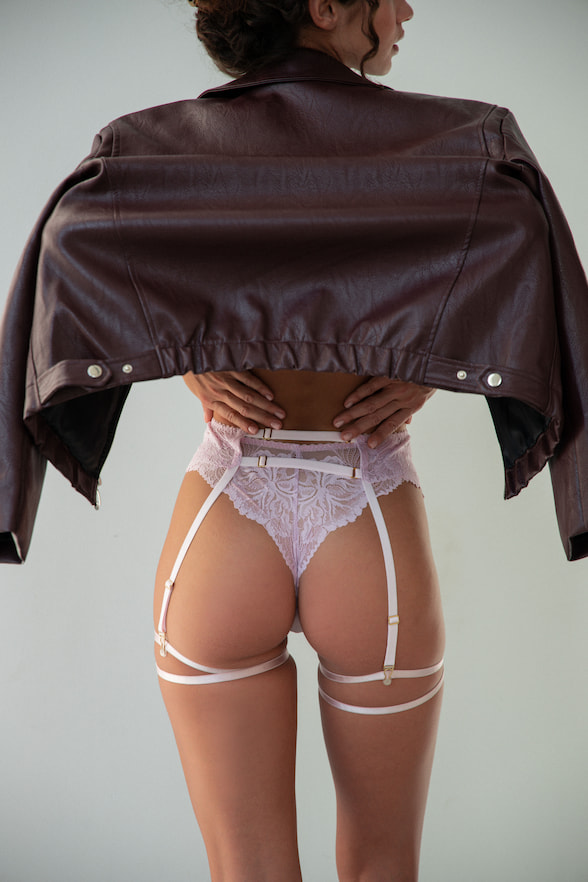 Ніжний каркасний комплект з мережива, що поєднує елегантність і комфорт. Блідо рожевий відтінок додає романтичності, а каркас забезпечує ідеальну підтримку.