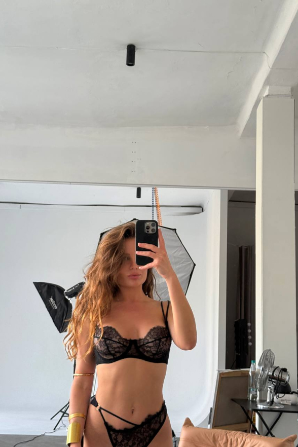 Каркасний комплект із вишуканого чорного мережива, який підкреслює форми і додає образу особливої елегантності. Фаворит багатьох завдяки ідеальній посадці і стилю.Відрізняється від Stella black мереживом та моделю трусиків.