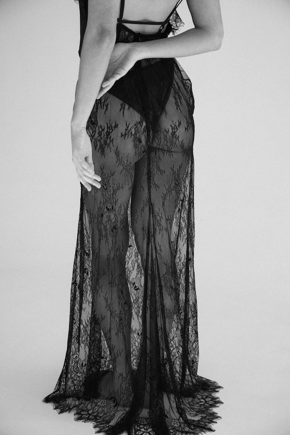 Розкішна мереживна сукня в підлогу з шовковим верхом. Легка, повітряна і надзвичайно елегантна — ідеальний варіант для пляжного відпочинку або літніх вечорів.
